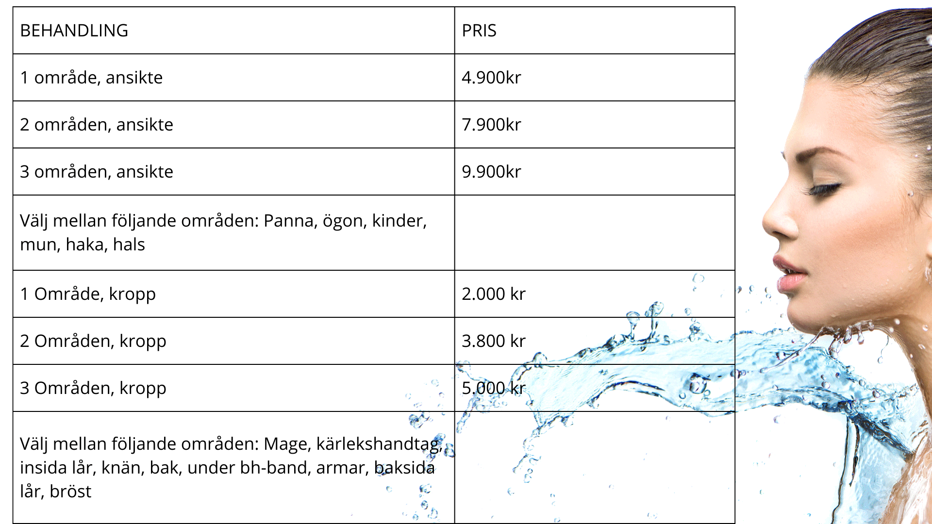 Prislista HIFU behandlingar